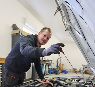 Michael Andersson började reparera cyklar redan som liten. Intresset växte sig snabbt starkare och han gick över till mopeder och A-traktorer. I dag är han delägare i företaget Lastbilsservice i Linköping som i huvudsak reparerar bilar och större transportfordon.